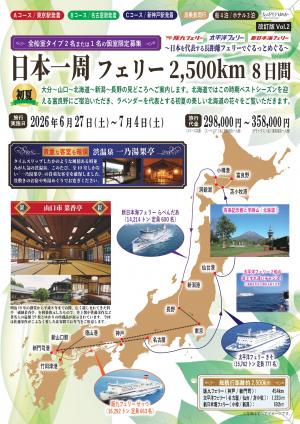 • 【2026年3月23日公開】2026年6月27日出発 日本一周フェリー2,500Km