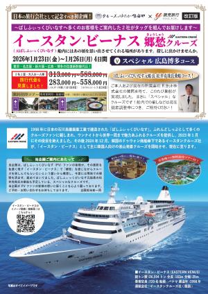 【2025年12月9日公開】2026年1月23日出発 「元ぱしふぃっく びいなす」イースタン・ビーナス 郷愁クルーズ