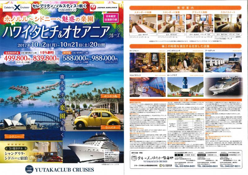 【いち押し外国船フライ&クルーズ】2017年10月2日出発 セレブリティ・ソルスティス ハワイ・タヒチ&オセアニアクルーズ