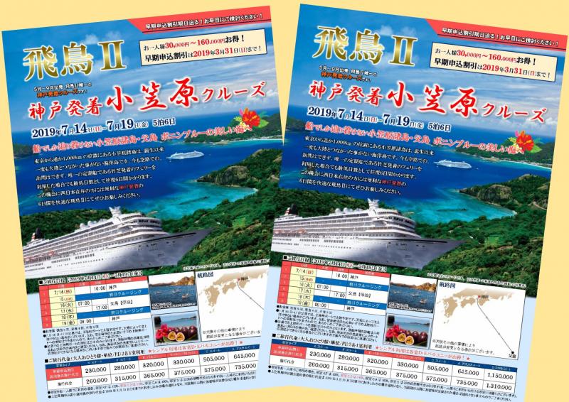 【日本船】早期申込割引(30,000円~160,000円割引)3/31(日)締切!飛鳥Ⅱ 神戸発着 小笠原クルーズ