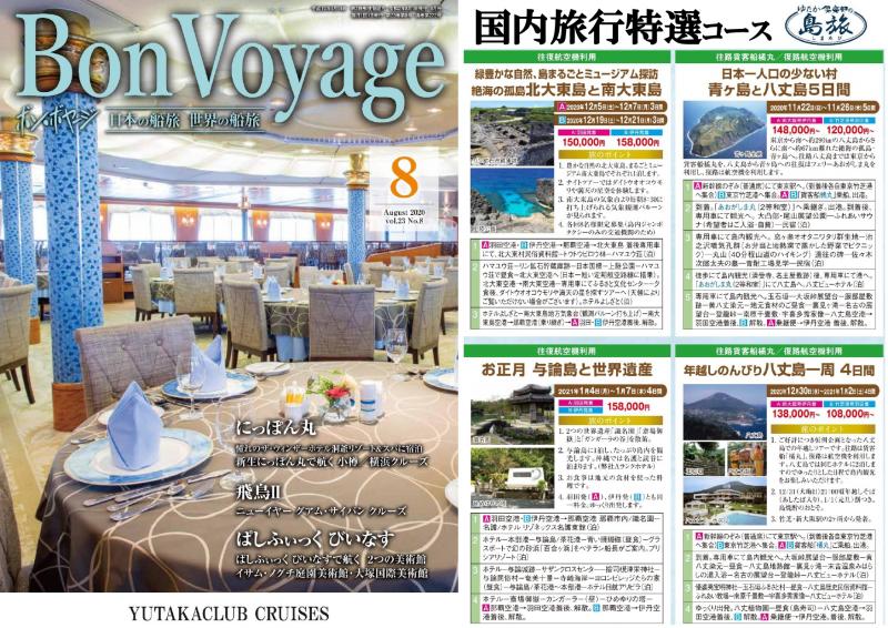 クルーズのゆたか倶楽部が発行している業界唯一の月刊誌「Bon Voyage(ボン・ボヤージ)」8月号のご案内です。クルーズに関する話題から、クルーズを楽しむためのコツ、乗船されたお客様の声など、多くの話題を盛り込んだ月刊誌となっております。