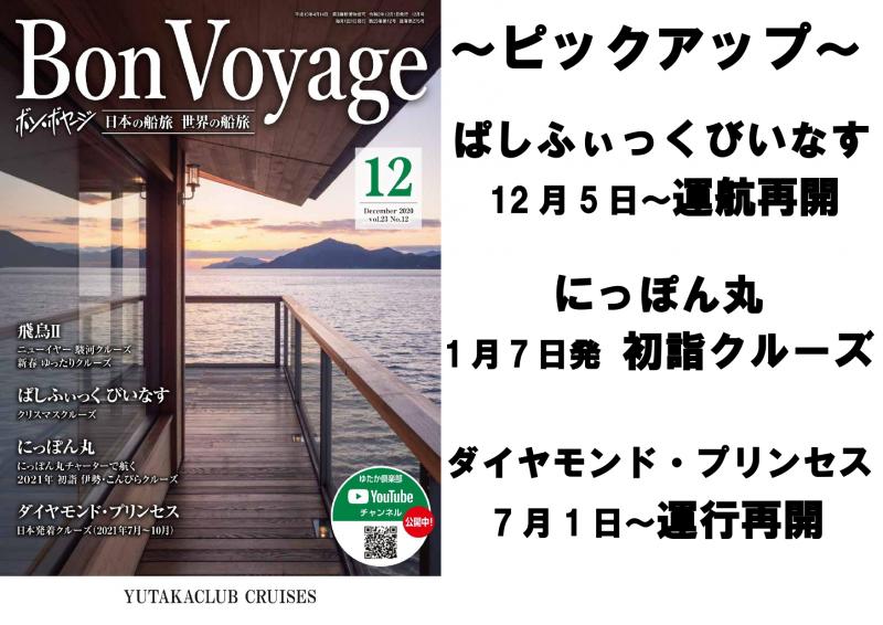 クルーズのゆたか倶楽部が発行している業界唯一の月刊誌「Bon Voyage(ボン・ボヤージ)」12月号のご案内です。