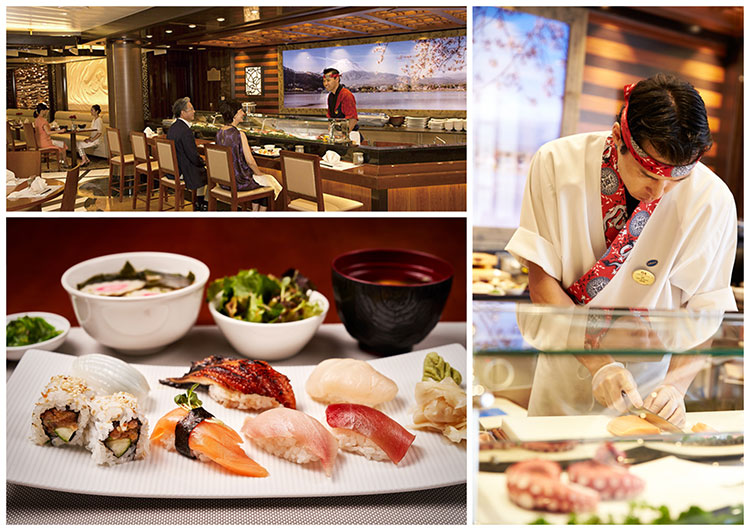日本発着クルーズのために2014年に新設したすしレストラン海(Kai)寿司。