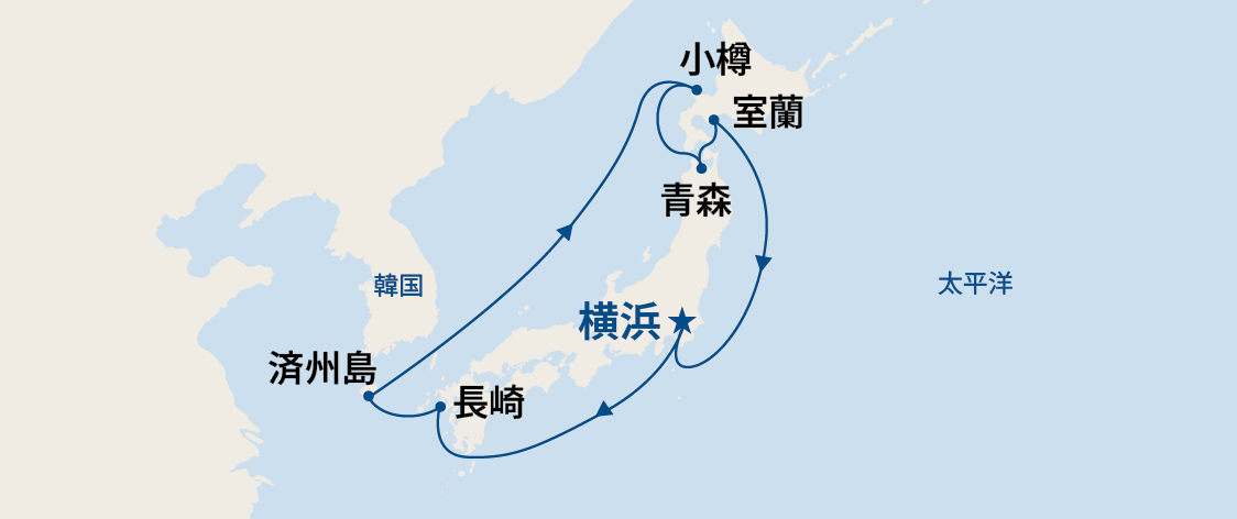 多数の日本語スタッフが乗船。展望大浴場や日本食など、非日常の船内でも日本のお客様がほっとする日本仕様のサービスでおもてなしします。