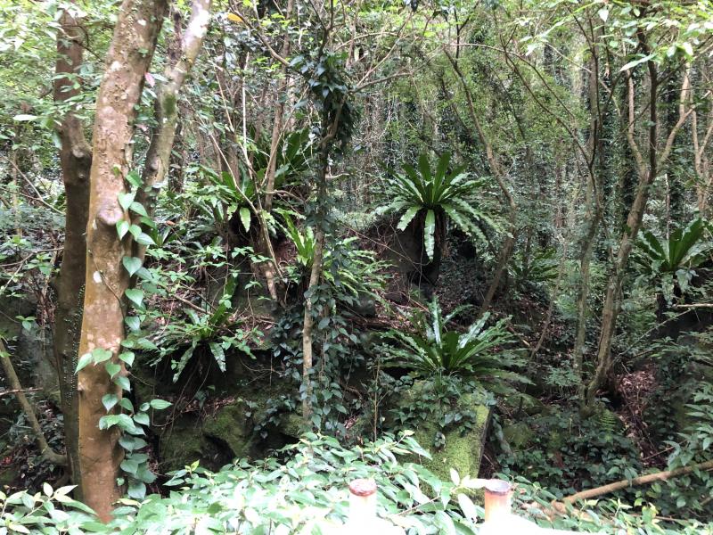 八丈島は2つの火山「八丈富士」と「三原山」から成るひょうたん型の島です。標高854mの円錐形の「八丈富士」は1万年前に誕生した若い山で別名は「西山」。今回は3日目は天気に恵まれ、八丈富士をハイキングしました。60分かけて階段を登り、直径400m、深さ50mの火口を覗き見て、30分かけて下りました。中腹のふれあい牧場で牛の餌付けを見て、夜は噴火した溶岩が海に注いで固まった南原千畳岩海岸で星を眺めました。一方、標高700mの三原山は10万年以上前に誕生した成熟した山で別名は「東山」。ジェラシックパークのような鬱蒼としたジャングルの中に滝の音が響きます。ヘゴシダが茂る「裏見ケ滝」を散策し、虹が浮かんだ滝の裏側をくぐりました。