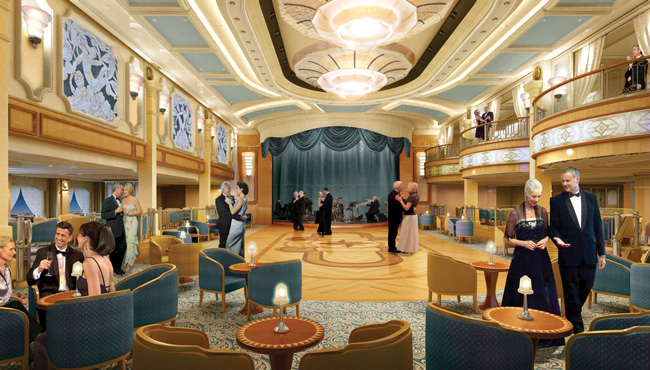 2010年10月12日にデビューした「クイーン・エリザベス(QE)」。海洋史上でも最も有名な客船の名前を受け継ぐ新たなオーシャンライナー。 およそ5億USドル(約500億円)をかけて建造されたキュナードの新しい女王は、1938年にデビューした初代QEに敬意を表して、初代QEをイメージした内装が施され、エレガントなアールデコを現代風にアレンジしてデザインされている。
