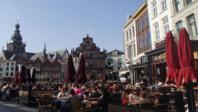 オランダで初めてローマ帝国の都市権を得た街として知られています。ライン川の下流のワール川の南岸に街が形成されており、市街地中心よりドイツ国境まで7km程度の距離です。紀元1世紀ごろ、ローマ皇帝・トラヤヌスは、この街の名前をUlpia Noviomagus Batavorumと定めました。短縮形であるNoviomagusはナイメーヘンの名前の語源となりました。現在、ローマ帝国時代の遺構はほとんど残っておらず都市を囲んでいた城壁の一部分が残存している程度です。19世紀になると、人口増加の問題から市壁撤去と市の近代化が図られました。国防上問題であるとの反対意見も根強かったがもはや近代の戦争において歴史的市壁は無力であったことが19世紀後半の普仏戦争などからも明らかとなり、市壁は崩されて市街改造は断行されました。1878年にはワール川を超える橋が架けられ、1936年には当時欧州でもっとも大きな橋と言われた道路橋に架け替えられました。