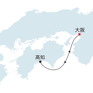 大阪の街の灯に見送られて出港。クリスマスムードに包まれた船内で思いおもいの時間をお過ごしください。高知では坂本龍馬の銅像が立つ桂浜や山内一豊が築いた高知城など歴史の面影をたどれます。