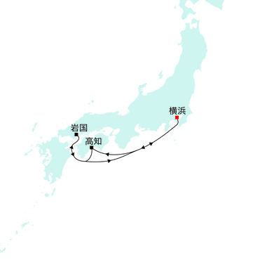 - 連絡バス(予定)高知:桂浜周辺、岩国:錦帯橋周辺