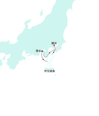 横浜から清水へ、週末利用で富士山を望む旅。ゆったり寄港で富士山を静岡・山梨両県から楽しめます。終日航海日には伊豆諸島をクルージング。船上からは白い砂浜が美しい新島など伊豆諸島の島影を満喫。