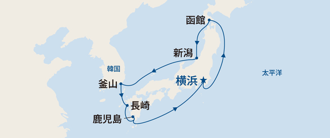 寄港地では自由散策もしくはショアエクスカーション(寄港地観光ツアー:別料金)をご利用ください。 - 天候、港湾などの事情により寄港地、日時、ルート等は変更になる場合があります。