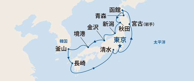 寄港地では自由散策もしくはショアエクスカーション(寄港地観光ツアー:別料金)をご利用ください。 - 天候、港湾などの事情により寄港地、日時、ルート等は変更になる場合があります。