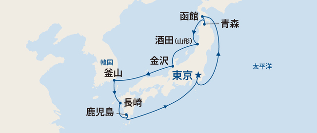 寄港地では自由散策もしくはショアエクスカーション(寄港地観光ツアー:別料金)をご利用ください。 - 天候、港湾などの事情により寄港地、日時、ルート等は変更になる場合があります。