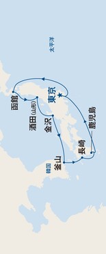 寄港地では自由散策もしくはショアエクスカーション(寄港地観光ツアー:別料金)をご利用ください。 - 天候、港湾などの事情により寄港地、日時、ルート等は変更になる場合があります。