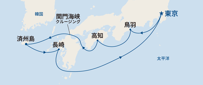 寄港地では自由散策もしくはショアエクスカーション(寄港地観光ツアー:別料金)をご利用ください。 - 鳥羽ではテンダーボートでの乗下船になります。